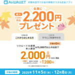 2025年11月5日~12月8日の期間中、「Airペイ(AirPAY)」経由でご利用可能な「COIN+(コインプラス)」のキャンペーンにエントリー後、「はじめて本人確認・15,000円以上の出金」でCOIN+残高の「2,