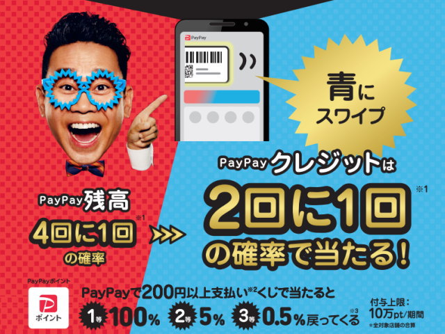 ※クレジットカード、PayPay商品券、PayPayアプリを介したPayPayカード(旧Yahoo! JAPANカードを含む)は対象外です。